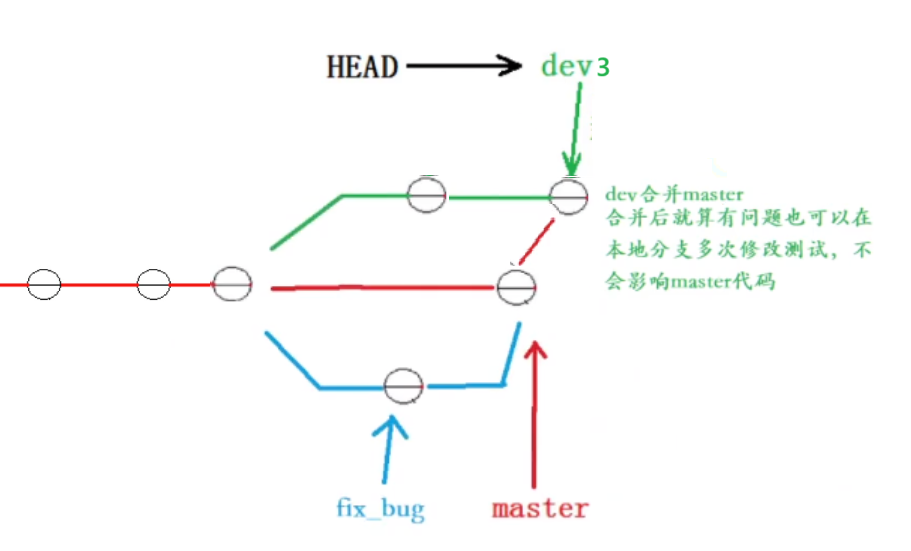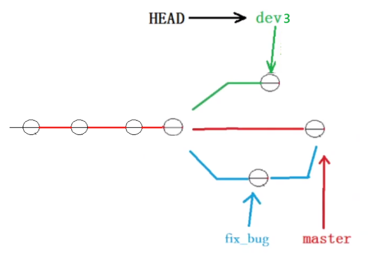 好的,言归正传,假设我们已经基于master分支创建新的分支dev3,并且在dev3分支中进行了开发,但突然发现原来分支中master有bug,该怎么解决?
