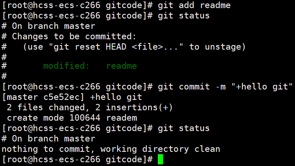 把工作区的文件存储到暂存区,add后面可跟多个文件,后面跟 .(点)表示所有文件。