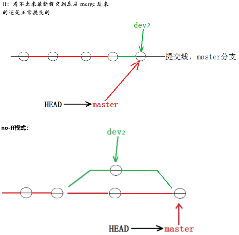 Fast-forward代表“快进模式”,Fast-forword模式(即ff)不能通过图示区分是merge提交还是正常提交,如下: