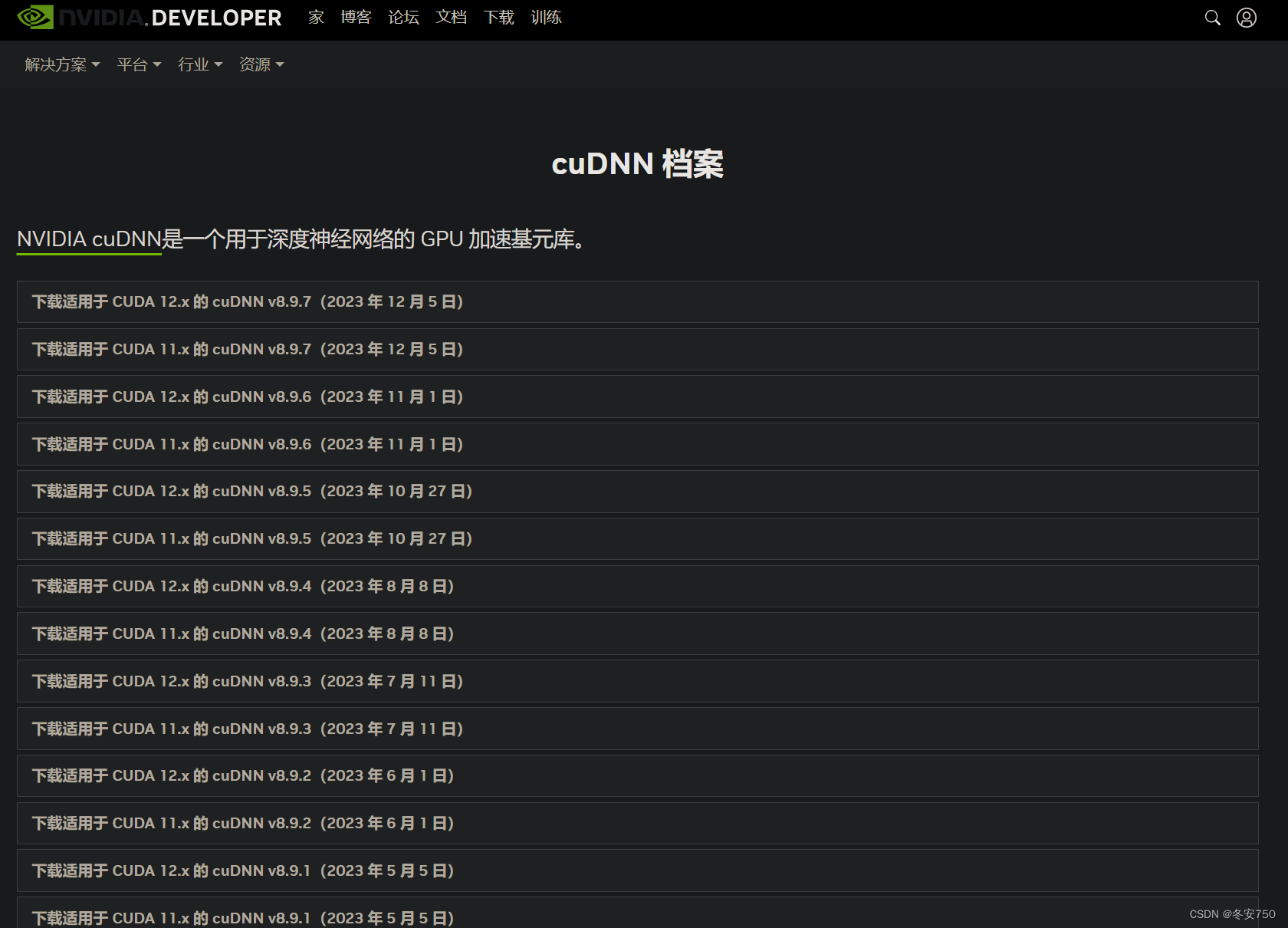 1.进网站:https://developer.nvidia.com/rdp/cudnn-archive#a-collapse805-111