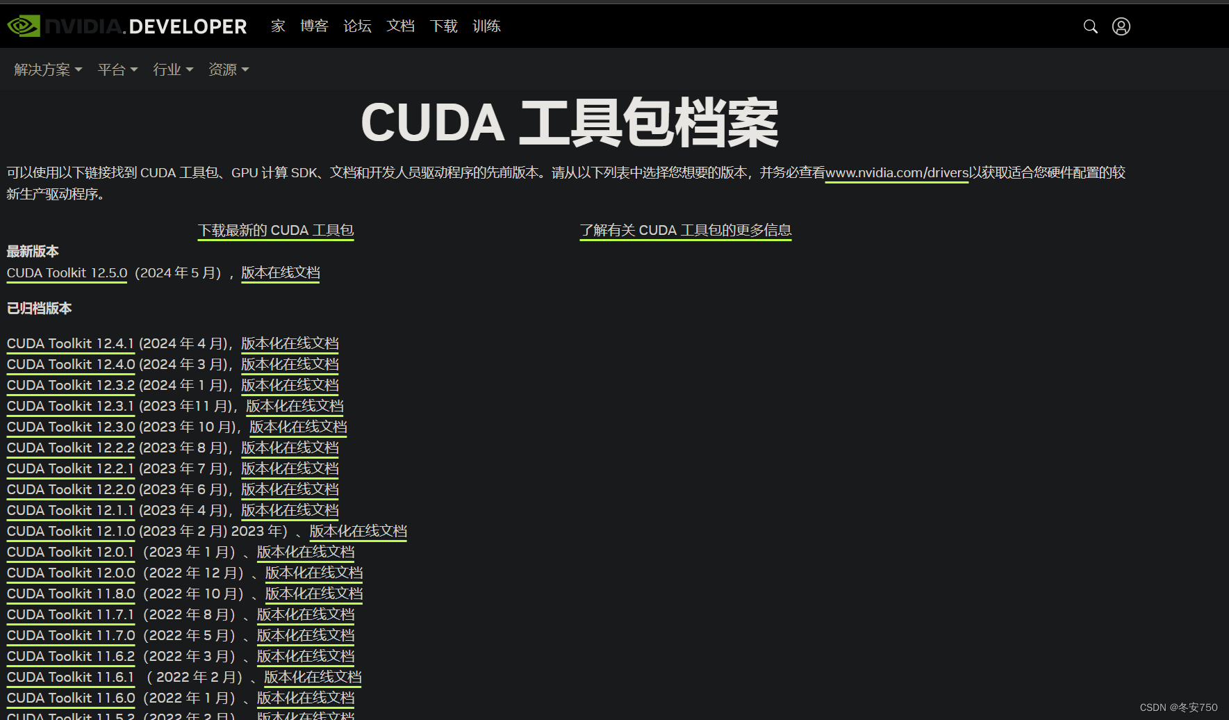1.先甩出一个地址:CUDA Toolkit Archive | NVIDIA Developer