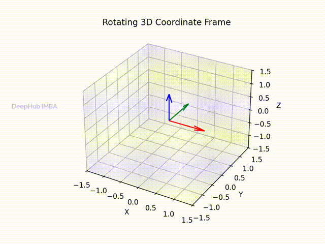 下面是生成上面动画的代码。关键是用scipy的expm函数实现矩阵指数,核心更新就是一行:R = R @ expm(hat(omega) * dt)。