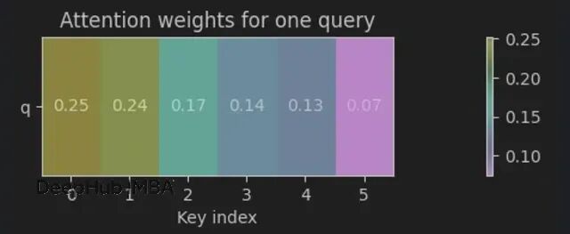return weights @ V, weights创建6个token embedding和一个查询,看看权重分配: