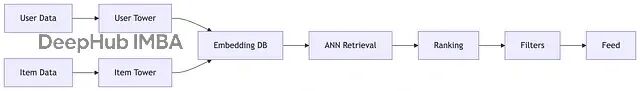 整个系统的核心逻辑其实不复杂:把用户偏好和内容特征都编码成向量,然后在高维空间中进行相似度匹配。难点在于如何设计特征、如何训练模型、如何优化工程性能。