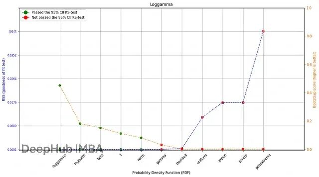 综合拟合优度、bootstrap、可视化、PDF特性,loggamma分布在这个场景下是最佳选择。需要的话可以指定loggamma重新拟合: