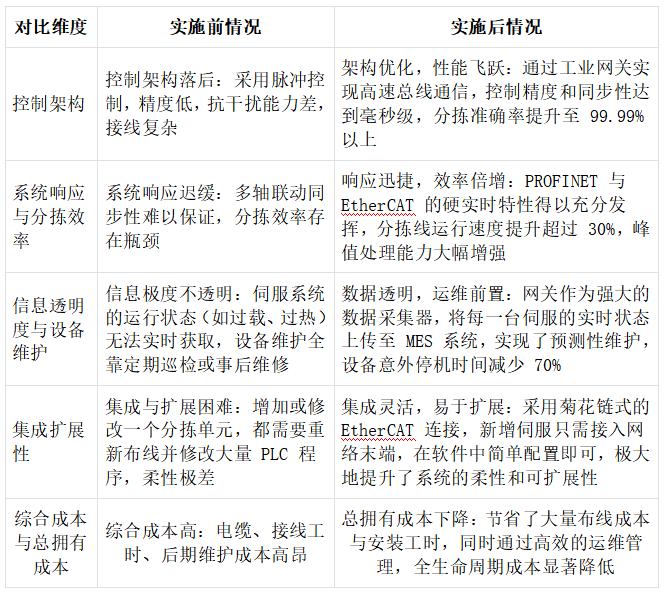 4.数据采集与诊断困难:传统的脉冲控制方式或非统一网络,使得实时获取每个伺服单元的详细状态(如扭矩、报警、负载)变得异常困难,系统缺乏预见性维护能力。