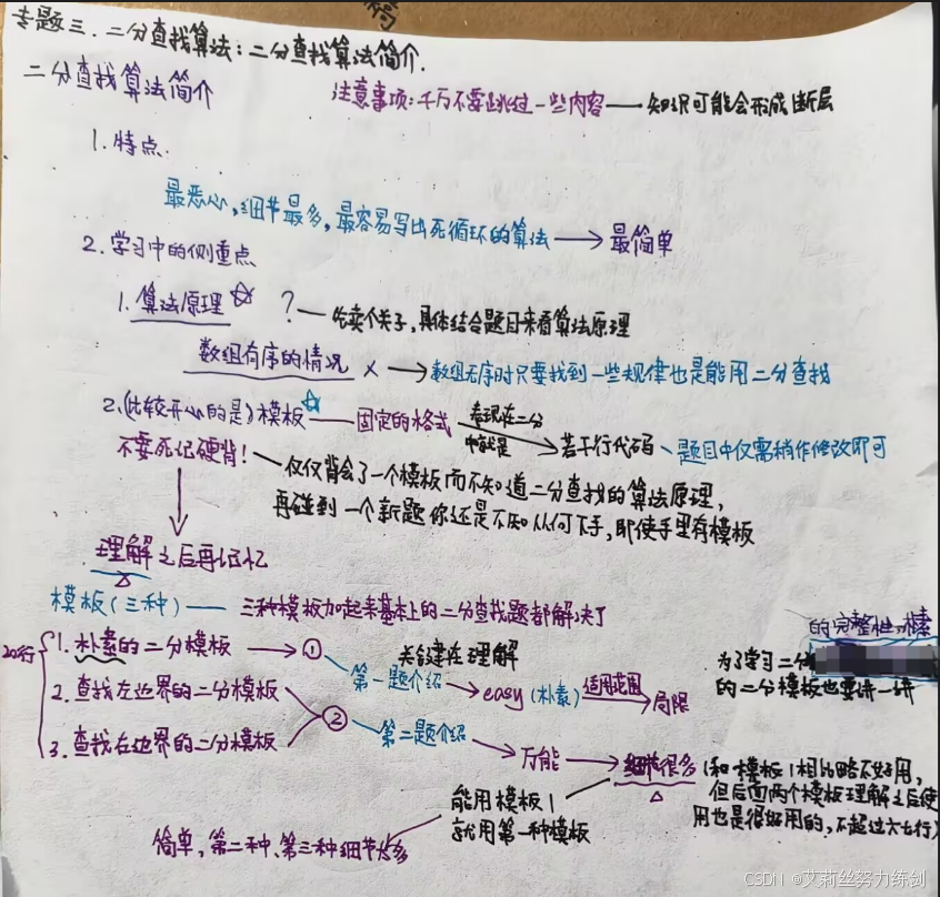 下面我们就来学习一下三大模板之一的【朴素二分模版】。