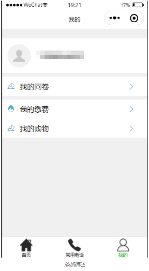 包括登录注册、我的问卷、我的缴费以及我的购物。