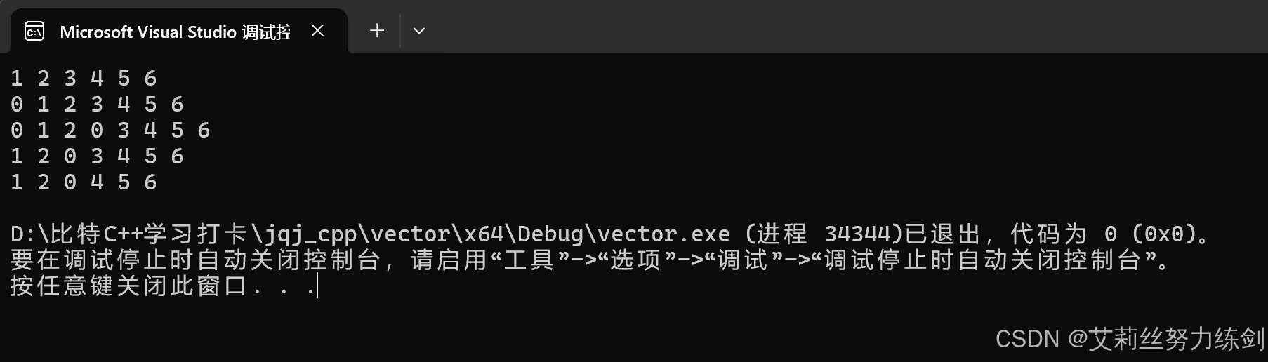 }vs环境下的运行结果:vs下使用的STL基本是按照1.5倍方式扩容——