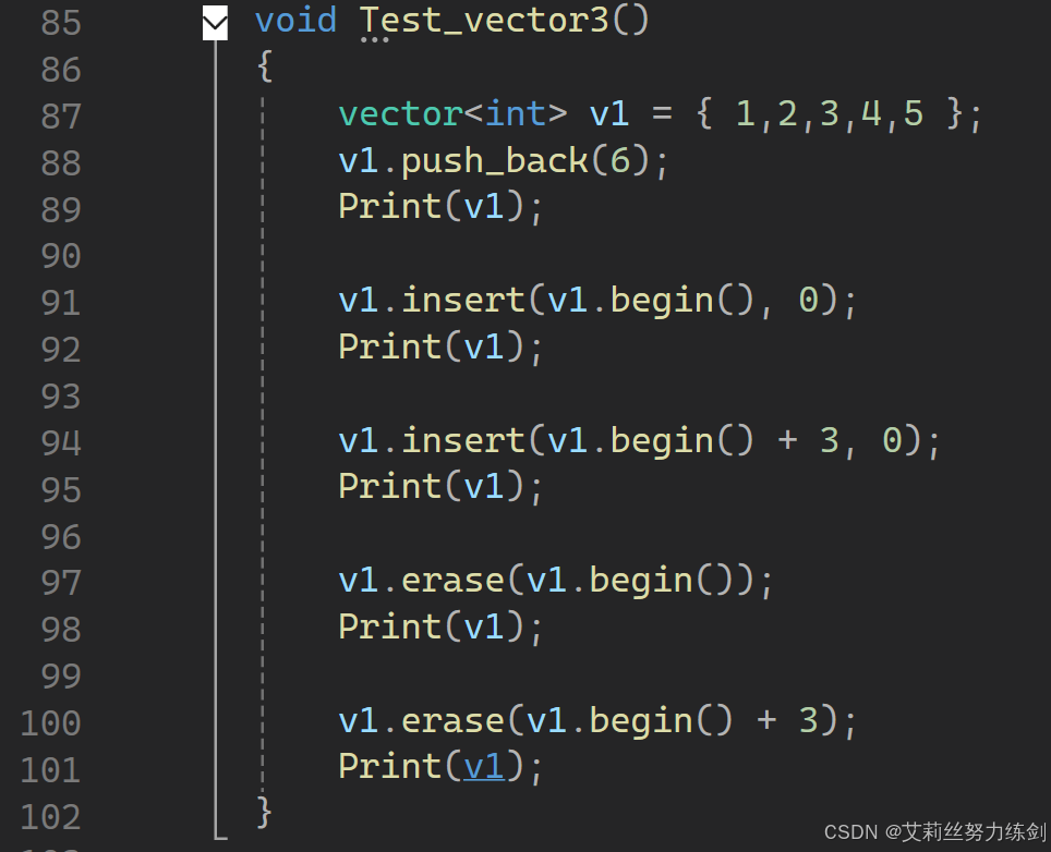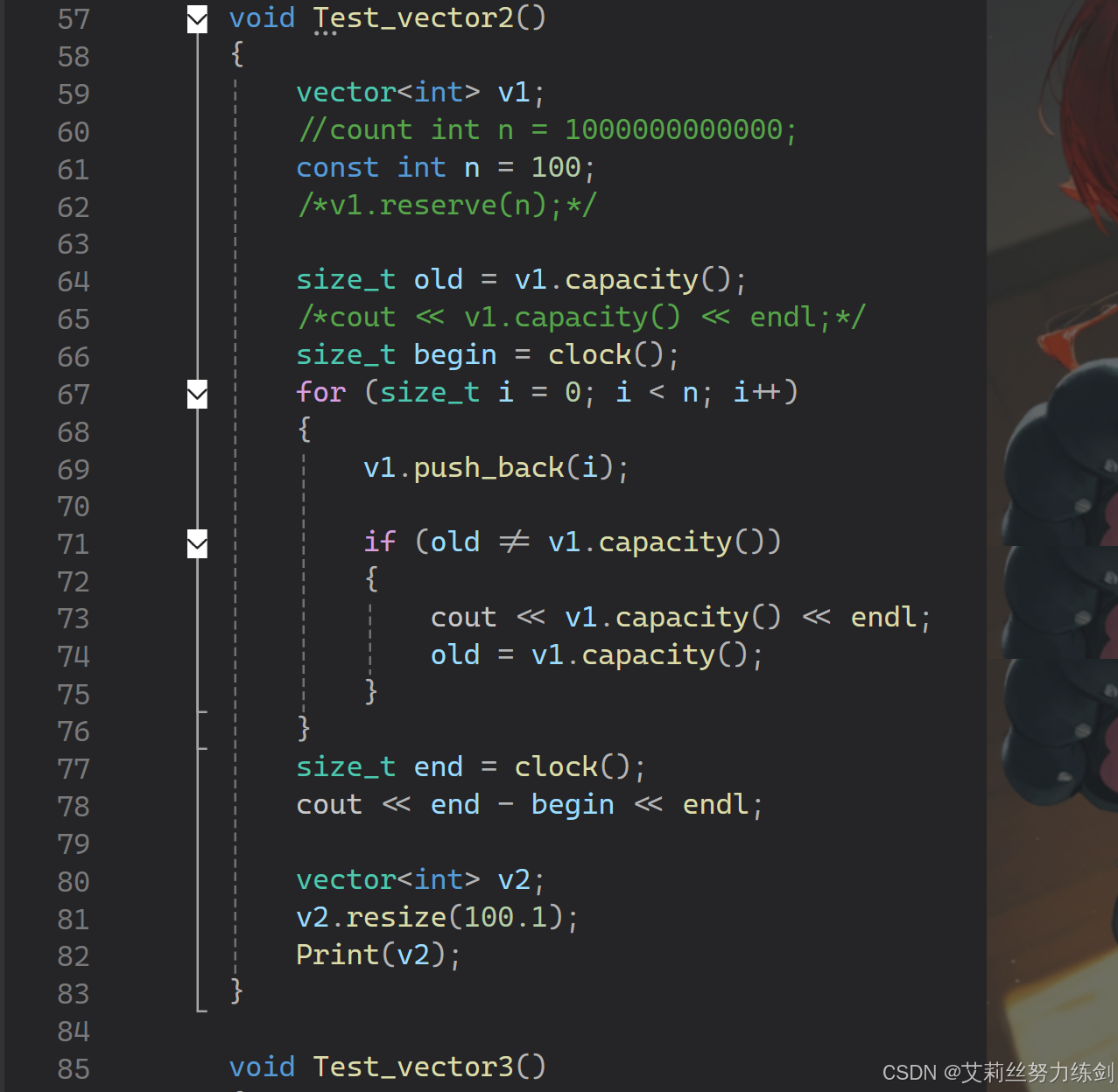v.reserve(100); // 提前将容量设置好,可以避免一遍插入一遍扩容