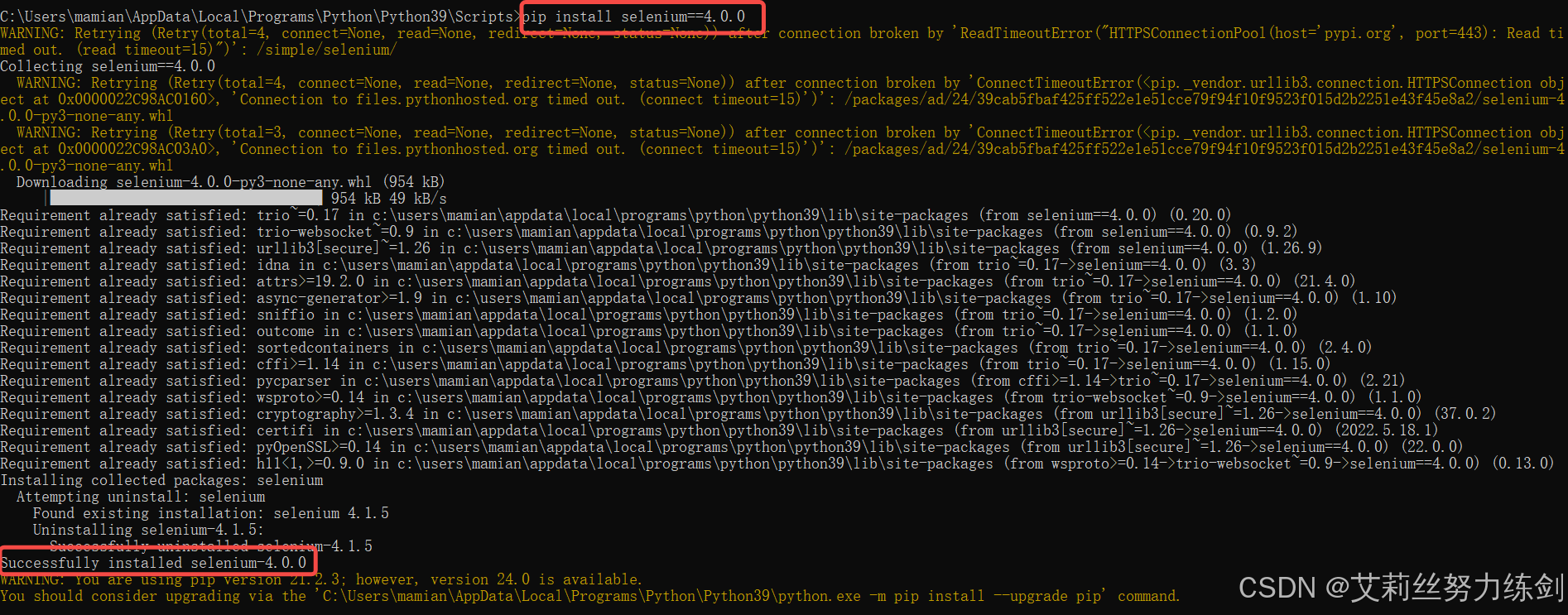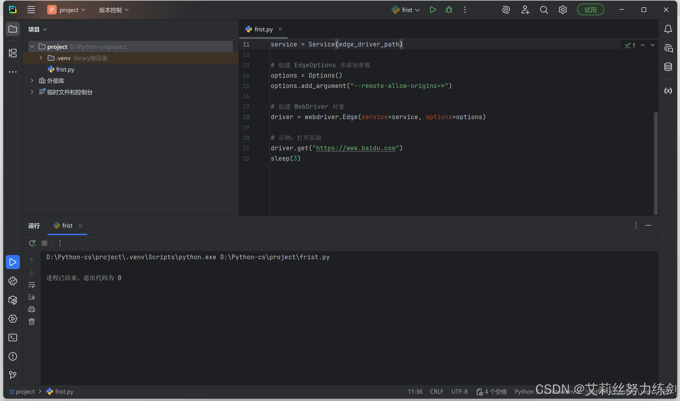 selenium版本很多,统一使用selenium4.0.0版本(可以在PyCharm里面选)。 pip install selenium==4.0.0