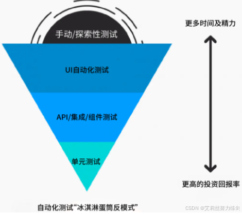 然后实际上在企业中,自动化往往是“冰淇淋蛋筒反模式”,如下图所示——