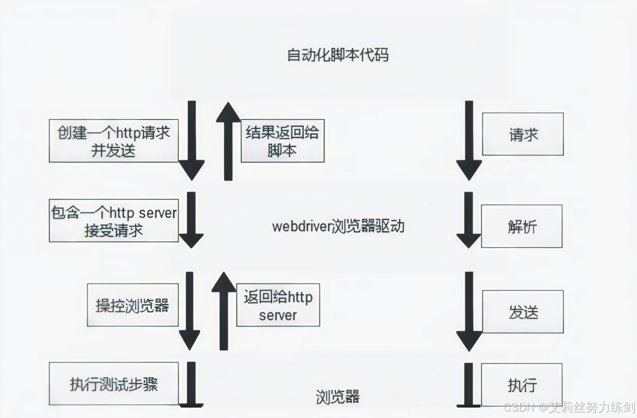 实现web自动化测试需要浏览器、浏览器驱动、selenium自动化脚本。这三者是如何交互最终实现web的自动化测试?