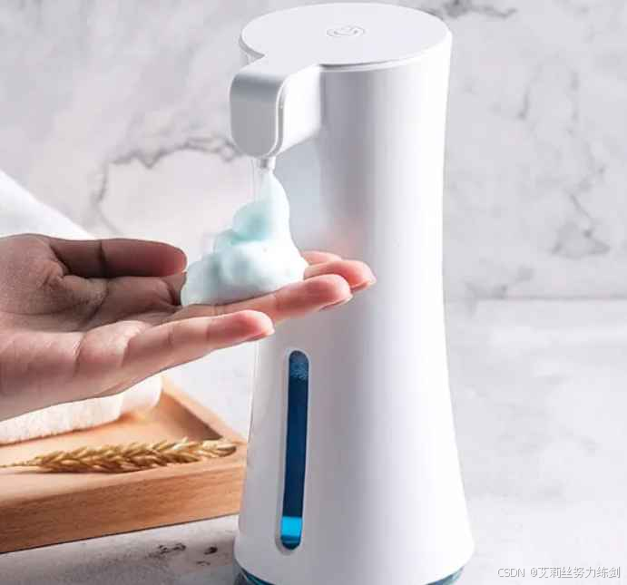 自动洗手液:免去了手动挤压可以自动感应出洗手液。