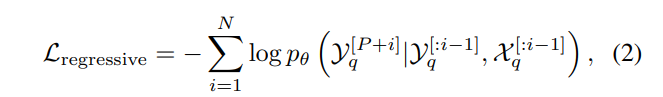 其中 Xq=[x1,x2,...,xp]∈RP×DXq=[x1,x2,...,xp]∈RP×D 是输入序列,Yq=[y1,y2,...,yl]∈RL×DYq=[y1,y2,...,yl]∈RL×D 是输出序列,其中 L=P+NL=P+N 表示输出序列的长度,DD 表示LLM的隐藏大小。θθ 是LLM中的可训练参数,并且我们仅计算生成文本的损失。