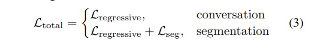阶段3:混合微调。 X-SAM以端到端的方式在多个任务的数据集上进行协同训练。对于图像对话任务,我们采用MLLM训练中常见的自回归损失 LregressiveLregressive。对于分割任务,我们不仅使用分割器训练中的分割损失,还在训练目标中加入了自回归损失。得益于统一的形式化和简单的训练目标,跨不同任务的端到端混合微调可以在一个统一框架内执行。混合微调的训练目标可以表述为: