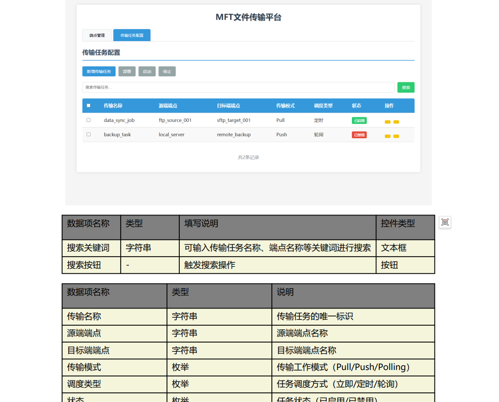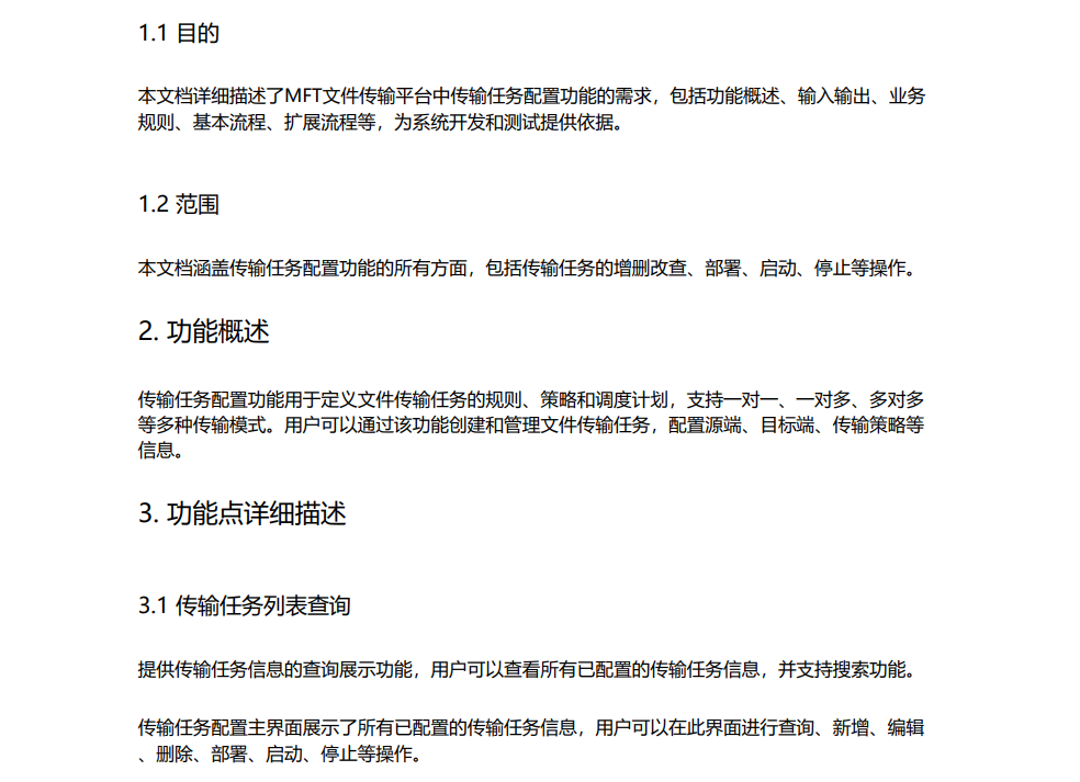 好的,现在任务升级了,即我需要你在前面理解我整个MFT文件传输源代码项目的基础上,帮我生成传输管理中的传输端点管理和传输任务配置两个功能的详细的软件需求说明书,具体的要求如下: