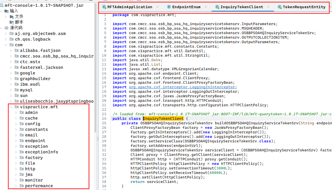 通过该工具,我们导入Jar包选择对应的包进行反编译操作,然后在反编译完成后将源代码完全导出形成一个工程项目。