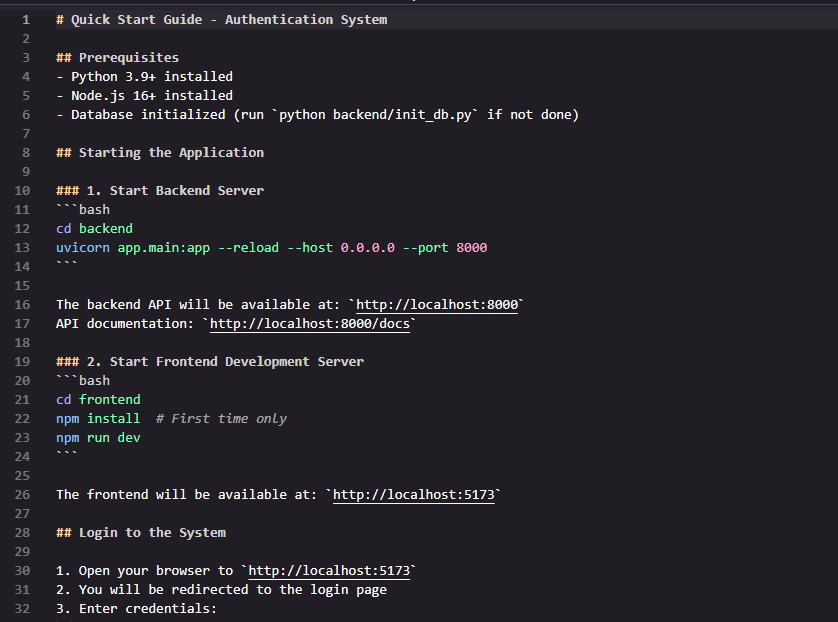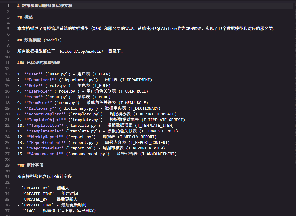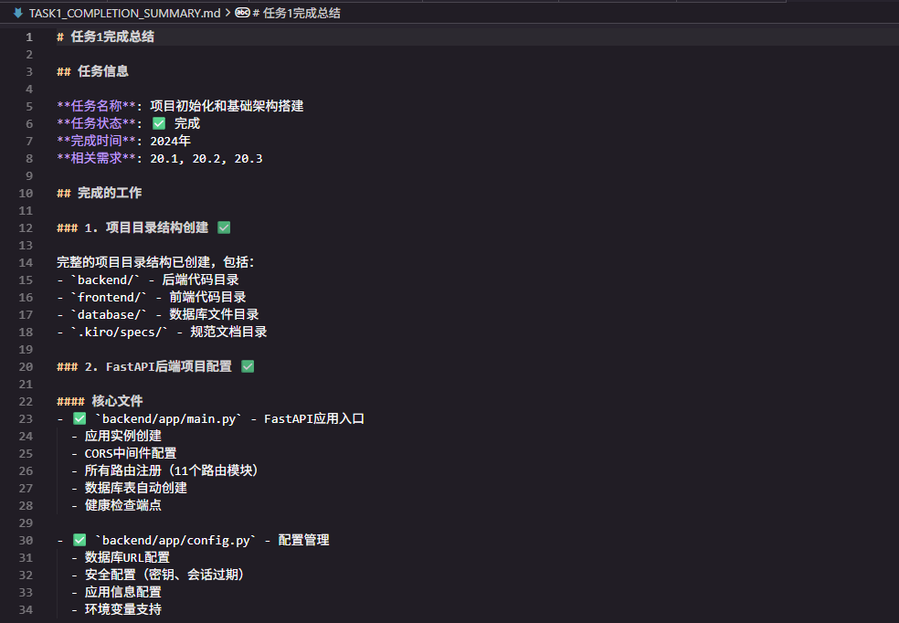 同时每一个Task任务除了实现完成进行验证外,还会输出详细的实现文档,类似数据库,进行完成init_db数据库初始化后会输出实现文档。