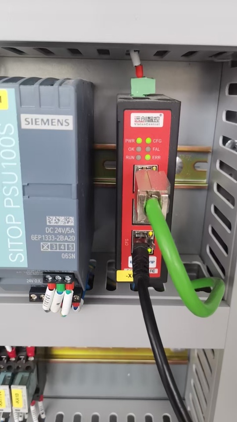 · 新增美国AB Ultra 3000i伺服驱动器(2098-DSD-030-SE,内置DeviceNet接口)负责高精度扭矩压盖,节拍可提升28%,却与西门子PLC“语言不通”。 若整体更换PLC,产线停机至少7天,损失超600万元。最终采用“协议转换”路线:引入远创智控YC-DNTM-DP工业级协议转换网关,让Profibus DP主站PLC直接驾驭DeviceNet伺服,实现“0停机”技改。