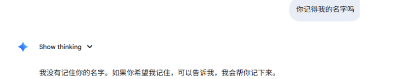 Gemini 2.5pro为例,开启一个对话框,让他记住我们的名字