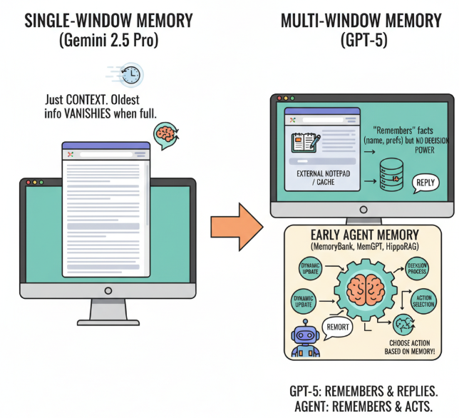 print(f"Q: {q}\nA: {resp}\n{'-'*40}")本文详细探讨了智能体中的记忆模块(Memory Module)及其在强化学习(RL)中的应用。通过对比不同的大型语言模型(如Gemini 2.5pro和GPT-5)的记忆能力,我们明确了“记忆”这一概念的多样性,揭示了它在智能体决策过程中的核心作用。区分了不同记忆模块,对早期的上下文记忆到早期的Agent Memory 模块再到Agentic RL的Memory 模块作了详细的分析,并且对Agentic RL的Memory 模块做了三种不同风格的更细致的划分,最后通过代码实现了RAG和Token风格的记忆模块。