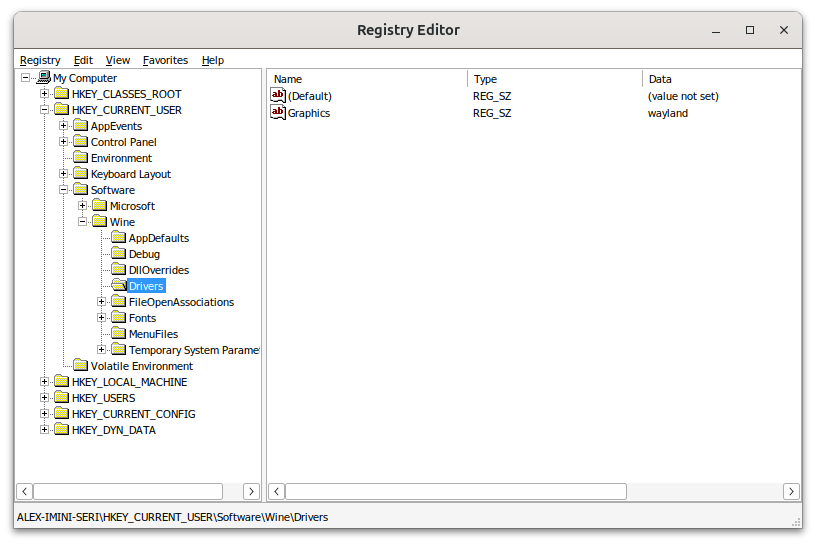 [HKEY_CURRENT_USER\Software\Wine\Drivers]
