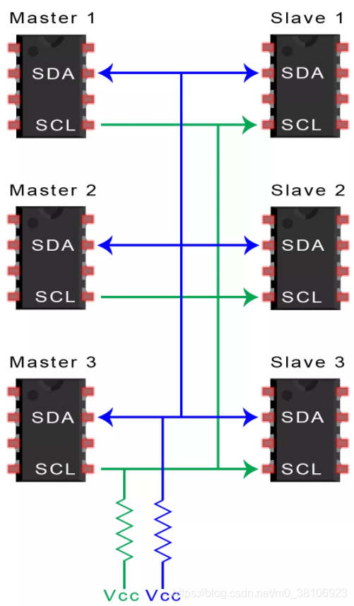 I2C总线允许多个从设备共享同一条SDA和SCL线,因此避免冲突是设计的关键。几个常见的解决方法: