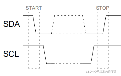 起始位(Start Condition):通信开始时,主设备会在SCL为高电平时,将SDA从高电平拉到低电平。此时标志着一个数据帧的开始。