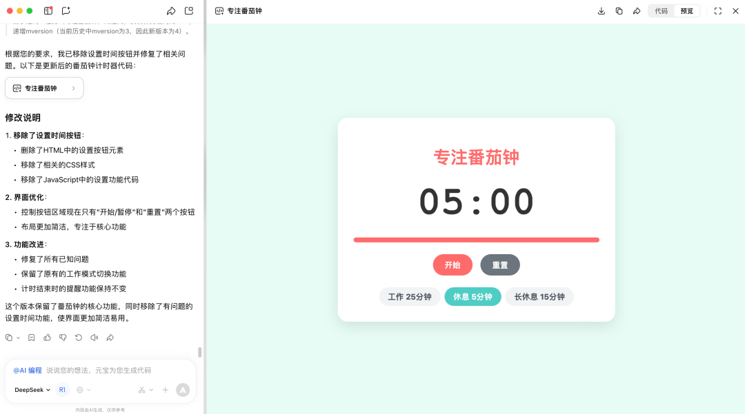 别怕,你的救星来了:今天,我们就来用DeepSeek + 腾讯元宝来定制你的专属番茄钟!