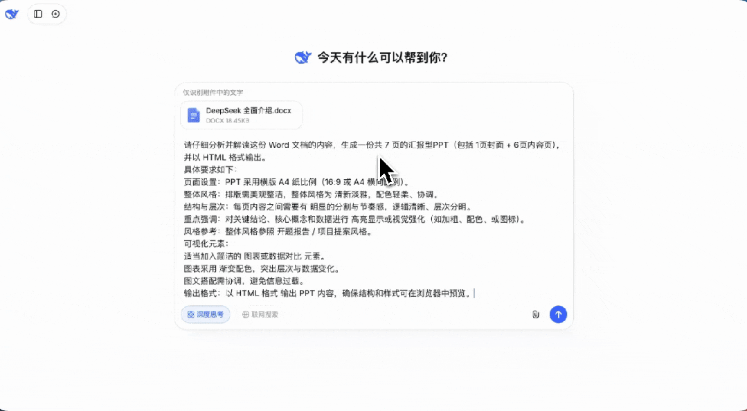 2. 上传你的Word文档:将你需要转换为PPT的Word文档拖拽或上传到DeepSeek。