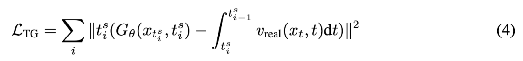 为了稳定地预训练我们的4步学生网络,使用轨迹引导目标 。对于教师模型轨迹上的时间步 ,我们对与学生轨迹重合的点 进行子采样(即对于4步模型,),并将轨迹引导目标计算为: