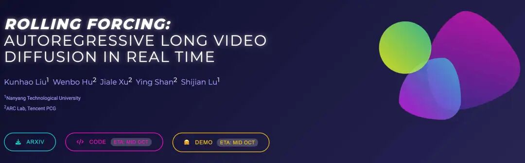 论文链接:https://arxiv.org/pdf/2509.25161 项目链接:https://kunhao-liu.github.io/Rolling_Forcing_Webpage/