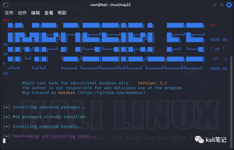 Mip22是一款用于web钓鱼的网络安全程序,适用于具有 Gnu / Linux 操作系统的计算机以及具有 android 操作系统的手机和平板电脑。支持常见69个网站的克隆。并且支持使用ngrok将页面映射到互联网。关于ngrok的配置,大家可以自行搜索,本文仅在本地环境进行演示。