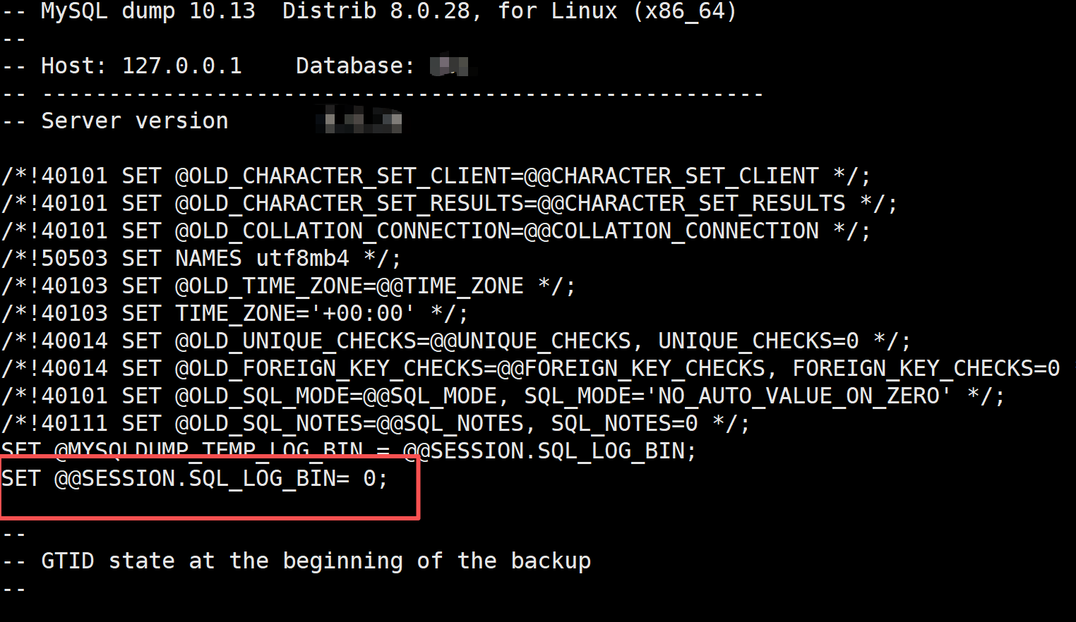 怀疑生产是低版本,毕竟都会先升级测试后才会升级生产, 而且低版本确实存在写binlog的情况. 但遗憾的是生产测试版本均一致;且未发生过版本变动情况. 查看导入的'.sql'文件均发现存在SET @@SESSION.SQL_LOG_BIN= 0;