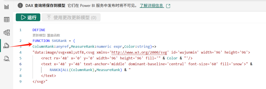 DAX结合SVG/HTML制作图表是DAX计算逻辑的一种(参考Power BI SVG制图入门知识2025版),因此也可以进行函数式封装。