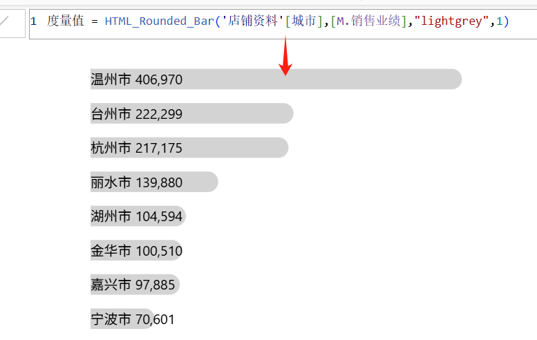今天分享圆角条形图函数。下图效果仅使用一个简单度量值生成: