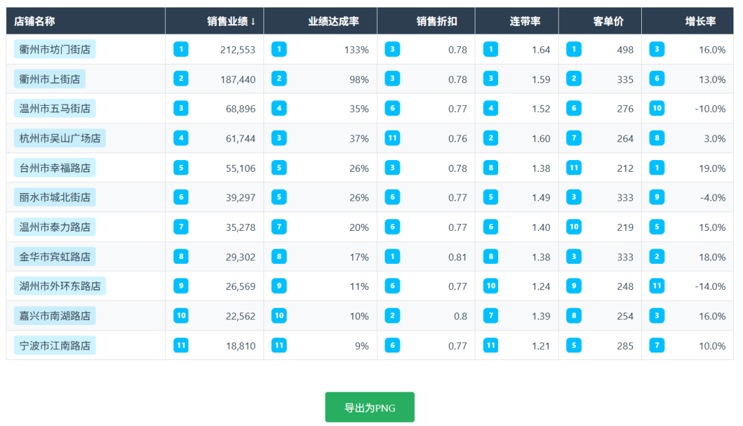 立即生成带有排名图标的表格,并可以导出PNG格式: