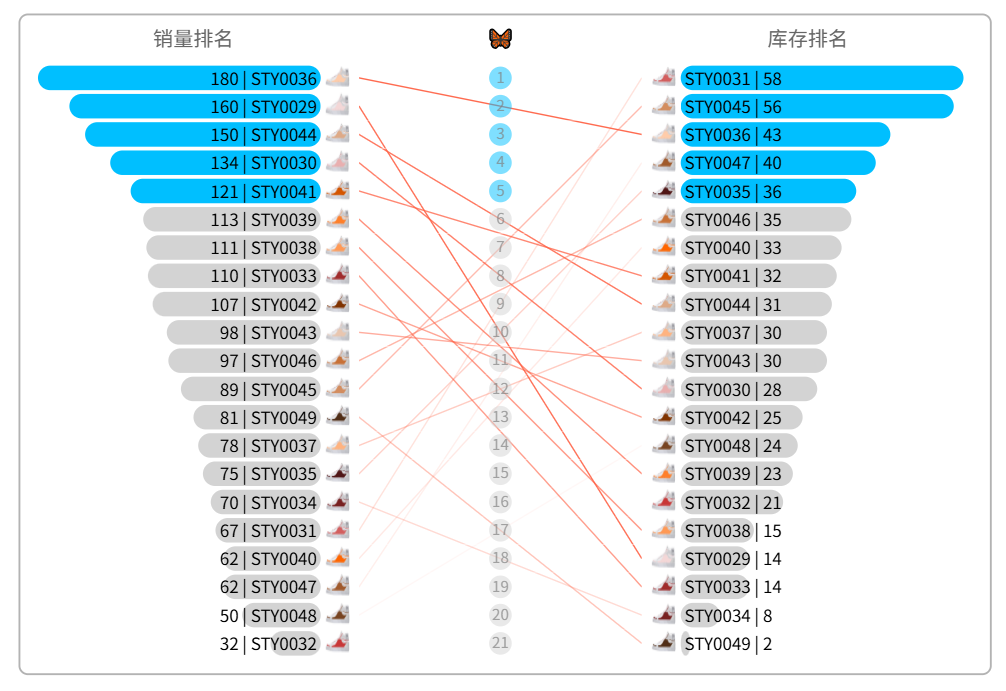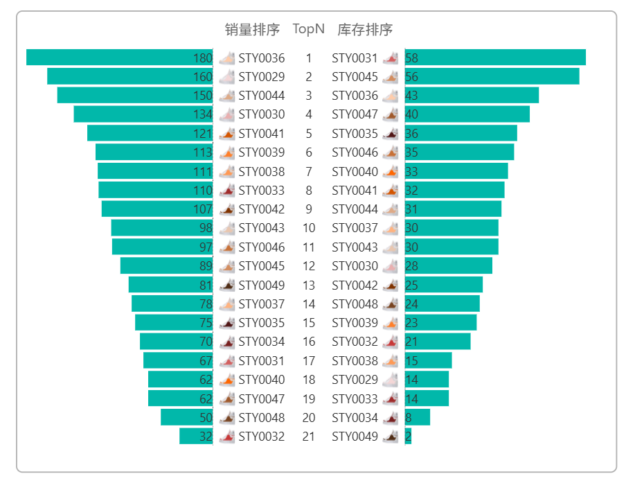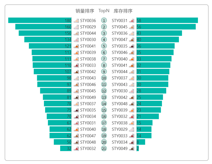 因表格具有横向扩展性,因此可以在此基础上添加内容,比如用在零售行业销售库存Top分析: