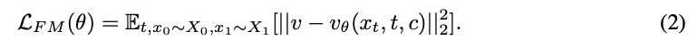 其中 。给定 作为文本嵌入,通过训练神经网络 来逼近目标速度场 ,通过最小化流匹配目标: