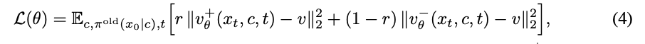 其中, 是目标速度场。隐式正负策略 和 是旧策略 和训练策略 的组合,由超参数 加权: