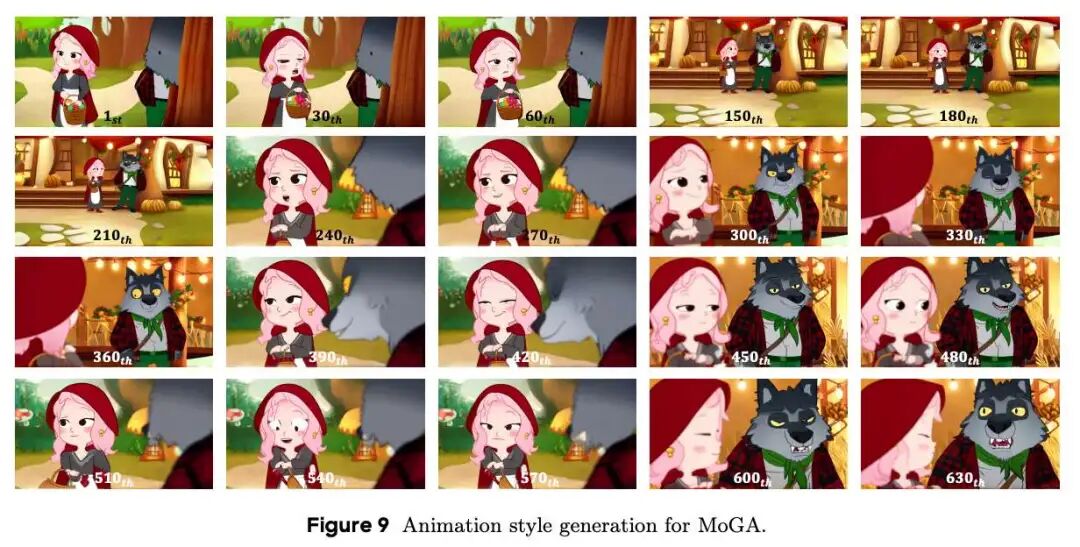 多风格视频生成。下图 9 展示了 MoGA 的多风格生成能力。MoGA 不仅在写实领域表现强劲,在动画等风格化领域也表现出色。它能够生成高质量的长篇 2D 视频,同时在不同风格间保持时间连贯性、身份一致性和场景连续性。