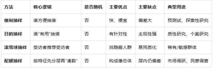 对于一般的企业经营分析来说,概率抽样可能反而用得少一些,一般都去找专门的咨询公司去处理了,非概率抽样的用得倒是有点多。