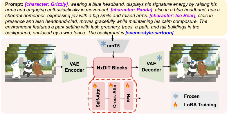 CCE就是在这一过程中诞生的——它让模型为每个角色学习一组独立的身份与行为向量, 从而在新的场景里,也能准确复现他们的性格逻辑与动作节奏。