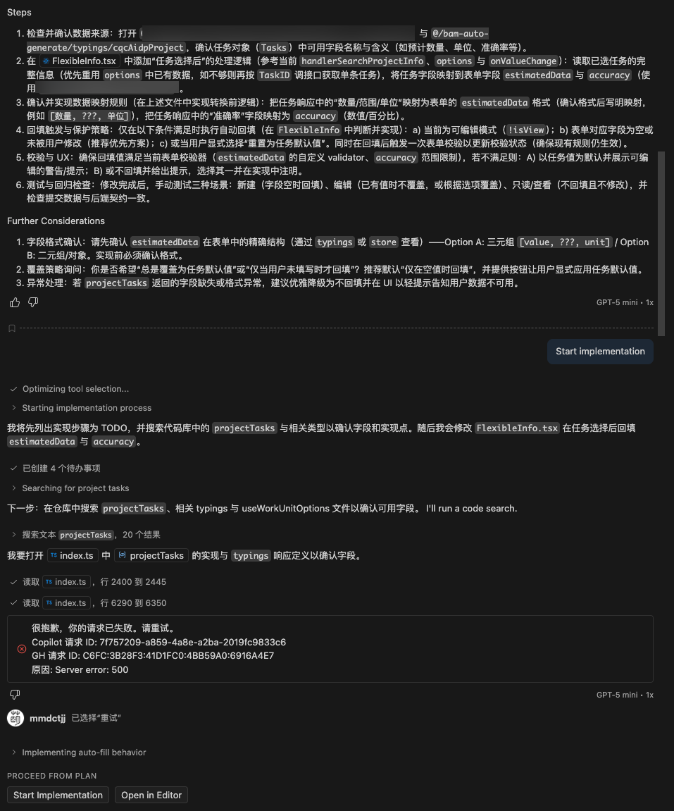 使用Chat视图中的 Plan 选项,VS Code 提出澄清问题,生成详细实施计划供审批。