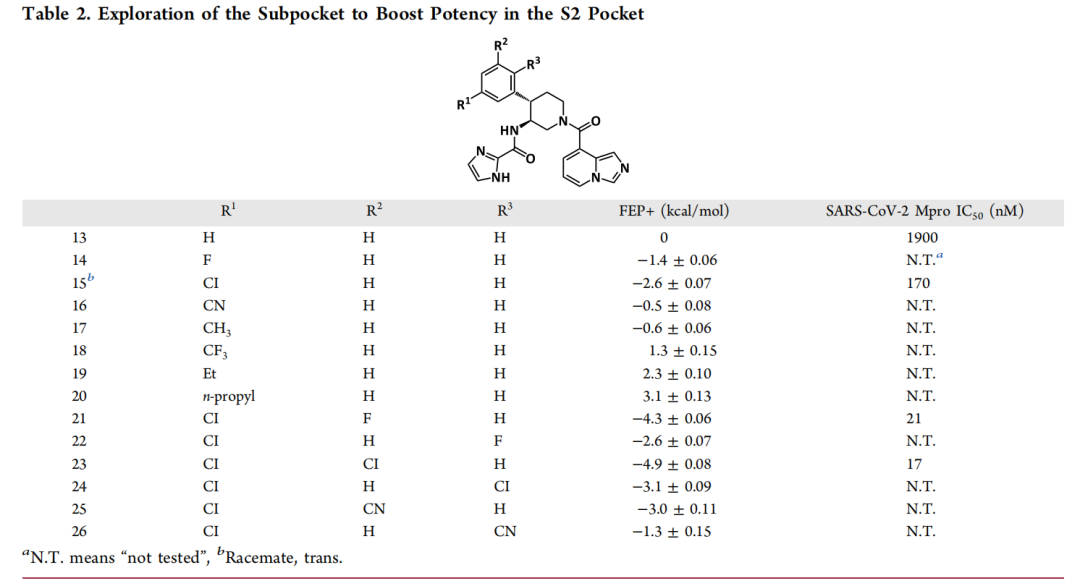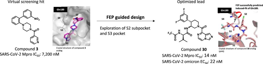 自由能微扰(FEP)计算作为该研究的 核心加速器,通过分子动力学模拟精准预测化合物与靶点的结合自由能,缓解了传统改造中 活性预测不准 的难题。研究团队针对S2和S3亚口袋实施了系统性FEP筛选: