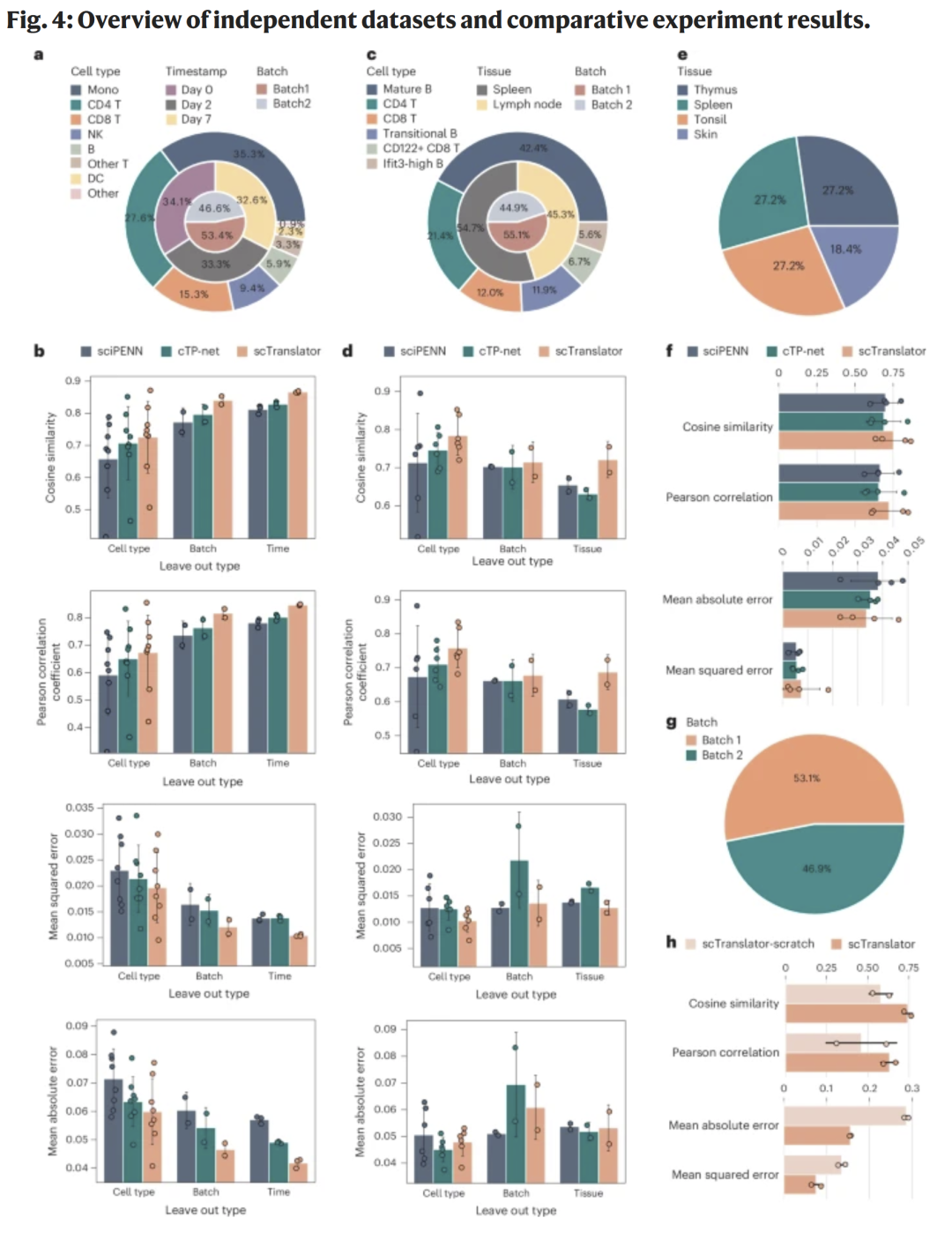 图2|scTranslator在体细胞与单细胞数据上的整体性能评估