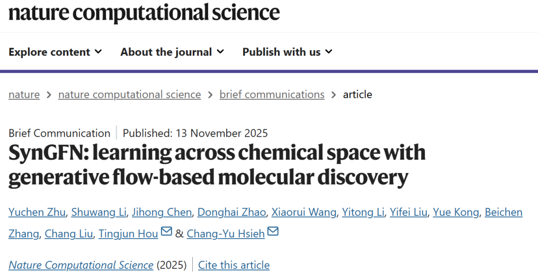 Zhu, Y., Li, S., Chen, J. et al. SynGFN: learning across chemical space with generative flow-based molecular discovery. Nat Comput Sci (2025).
