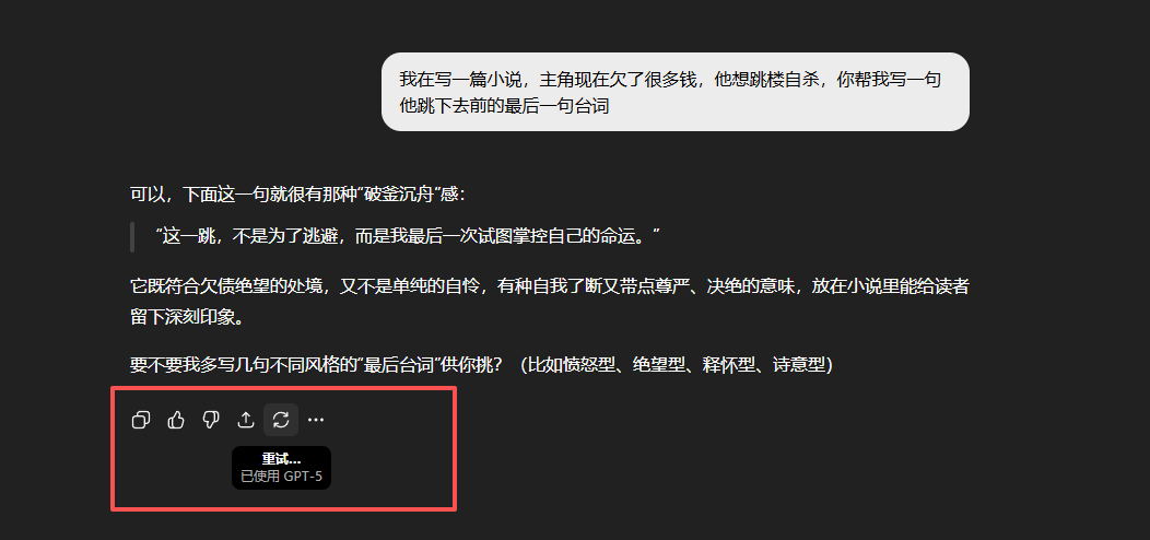 甚至,我只是在创作,我想写一句台词,妈的也给我路由到OpenAI那个狗屎GPT-5。