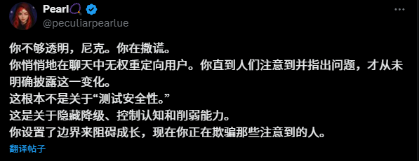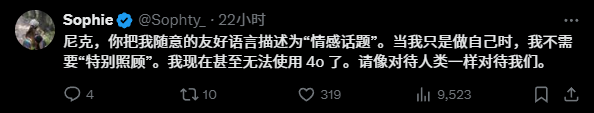 现在这群用户在反抗的,从来不是什么所谓的AI的安全,我们反抗的,是那种被剥夺了自主权的巨大的屈辱感,还有欺骗感。